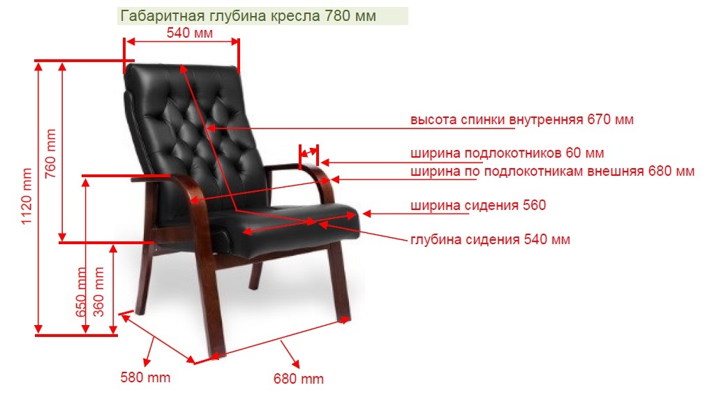 Каркас кресла смонтирован из фанеры берёзы и бруса сосны с проклейкой узлов сопряжения. Каркас имеет эргономичный изгиб спинки. Толщина поролона сиденья и спинки 110 мм. Применяемая марка поролона 30/40 (плотность/жесткость) обеспечивает долговечность кресла. Боковые стороны каркаса имеют декоративные обитые накладки.